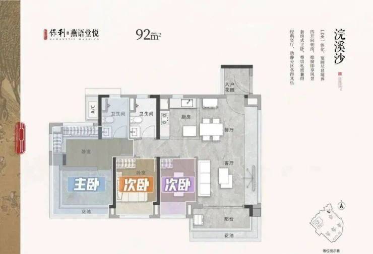 约90㎡三房;更静谧,望中心园林!下楼即享全维配套;
