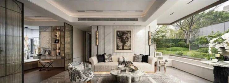 园林采撷《梁园飞雪图》画中意境及神韵,引入曲水飞虹、万倾涵碧、松间、观澜、林隐等景观组团,再现“枯山水”东方禅意画卷,缔造具有东方韵味的新中式之美。