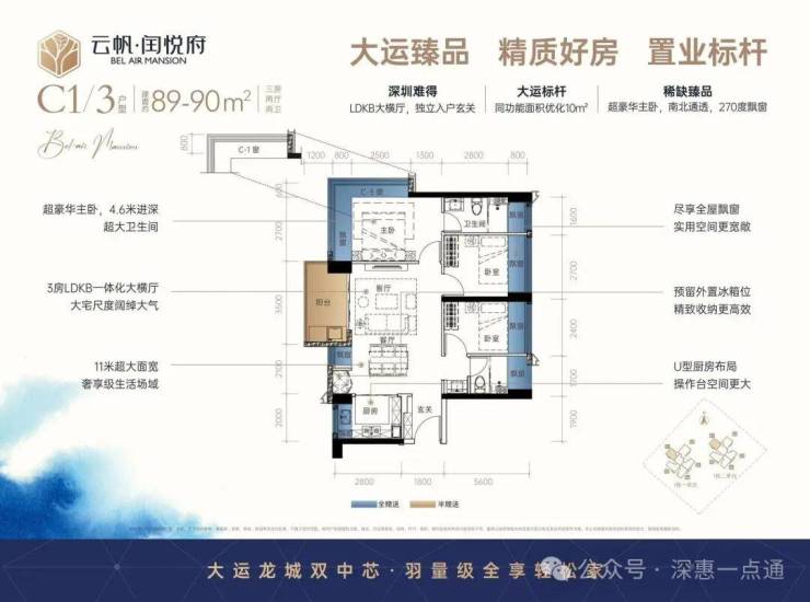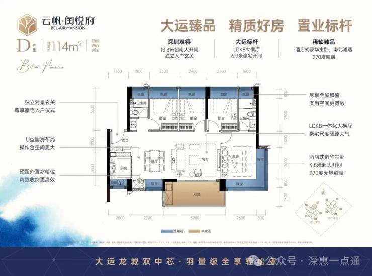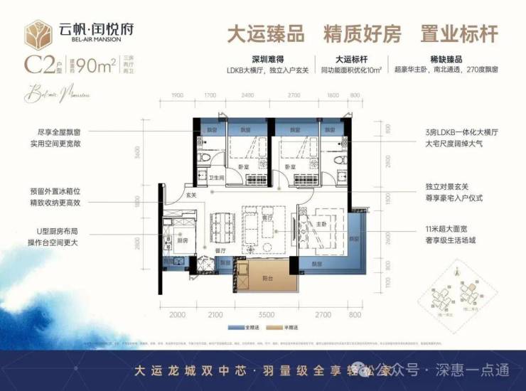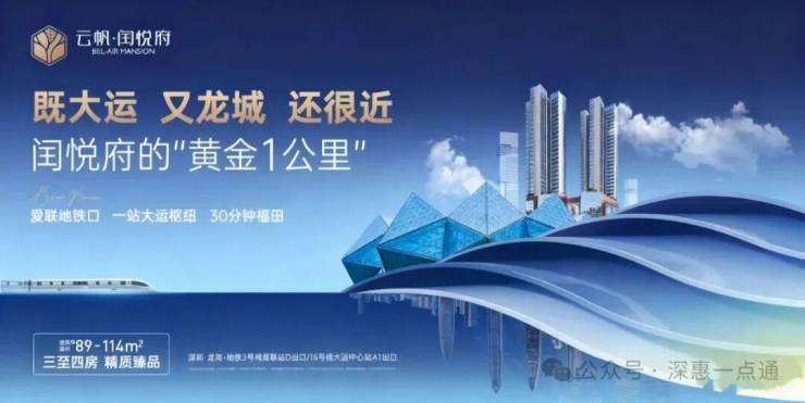 云帆·闰悦府,位于龙岗区龙城街道龙翔大道与如意路交汇处东南侧约140米,地处龙岗中心城爱联板块核心位置,周边配套成熟且发展潜力巨大。项目紧邻龙城公园、大运中心等城市地标,步行可达星河COCO Park、山姆会员店等商业配套,交通上距离3号线"爱联站"约600米,1站到大运站可换乘14/16号线及即将开通的深大城际/深惠城际,通勤便利性高。 龙岗区作为深圳产业强区,连续6年位居全国工业百强区榜首,2025年经济总量目标6800亿元,产业能级不断提升。润悦蓝湾公馆周边3公里内聚集了多个高新技术产业园区,如大运AI小镇(位于横岗街道,规划60.8万平方米,总投资6.91亿元)、嶂背工业区(规划面积45.9公顷,正在转型升级为AIoT研发基地)等。