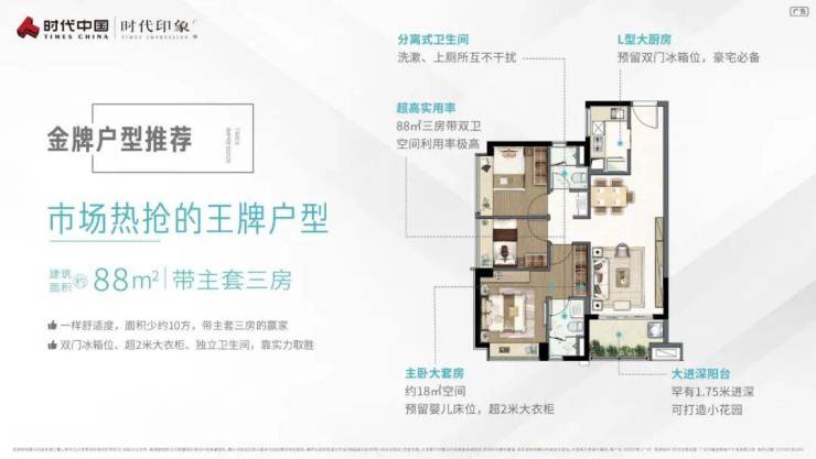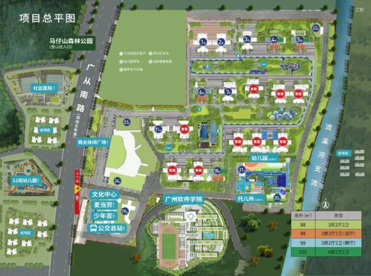 【户型】:建面约88-99㎡三房,88㎡(带主套三房)、98㎡(全南向三房)、99㎡(板式通透三房)