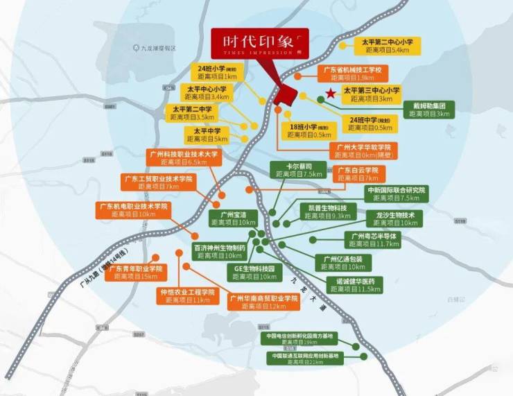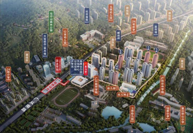 围绕太平地铁站口新增规划了1所24班小学和1所18班小学、以及1所24班中学、2个商业中心(时代印象汇+项目正对面规划新增商业中心)。(注1)