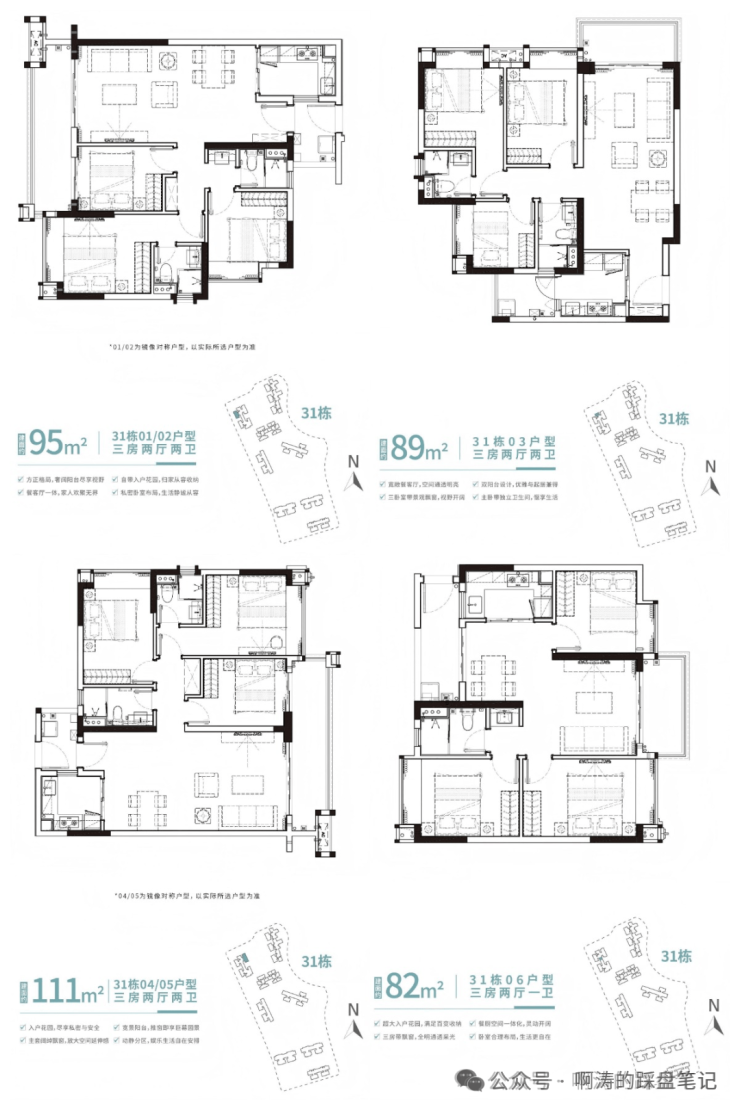 【户型鉴赏·31栋】建面约82-89-95-111㎡三房