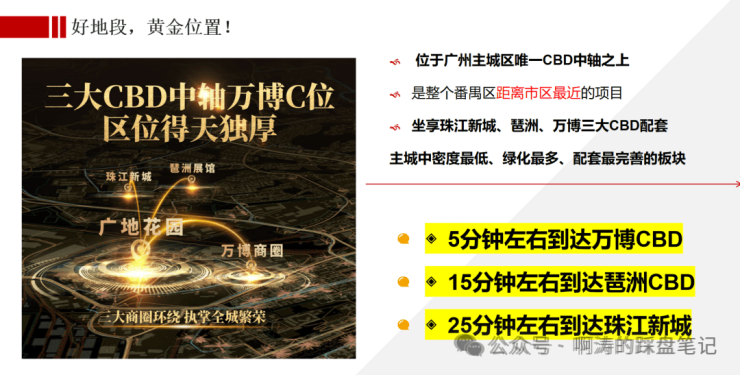 ※华南板块,位于广州主城区三大CBD中轴之上,坐享广州三大国际 CBD 中轴发展红利;2022 年万博长隆 CBD 扩容后将成为番禺经济新中心。