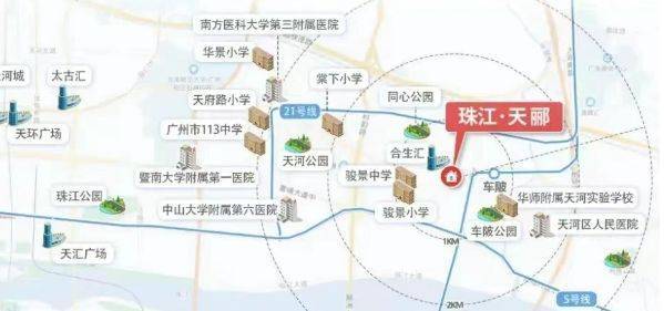 教育医疗资源同样优质密集:骏景小学、华景小学、天府路小学、华师附天河实验学校、广州113中学等名校环伺;华侨医院、南方医科大学第三附属医院、中山大学附属第三/第六医院等多家三甲医疗机构为健康保驾护航。