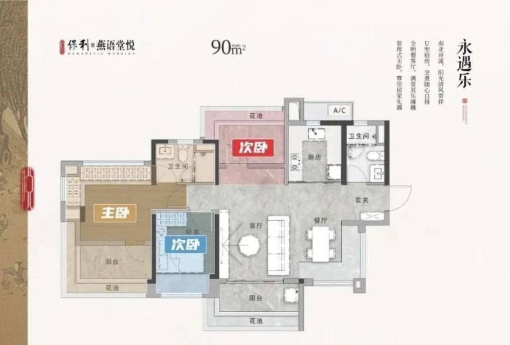 建面约90-125㎡三至四房新中式雅宅