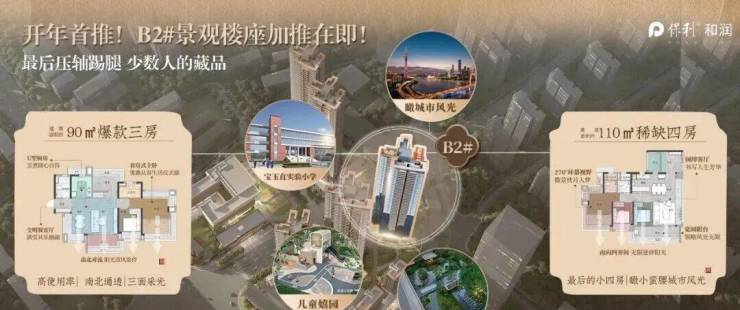 约110㎡四房;视野开阔,望城市景观!最后臻藏小四房。