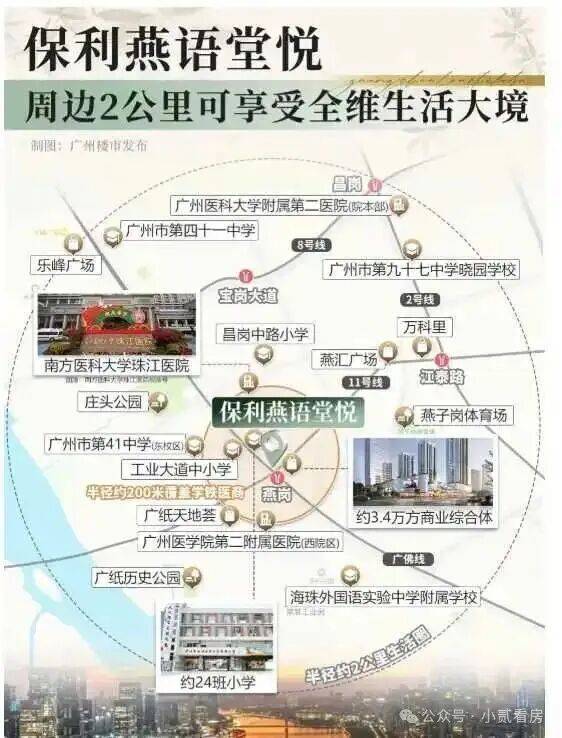 保利燕语堂悦位于氛围成熟的海珠西老城区,周边不缺乏大型的商业,比如有综合体方圆333、乐峰广场、广百等等,可以说是海珠最成熟的商业都在项目周边了,烟火气十足,不愁吃喝玩乐。