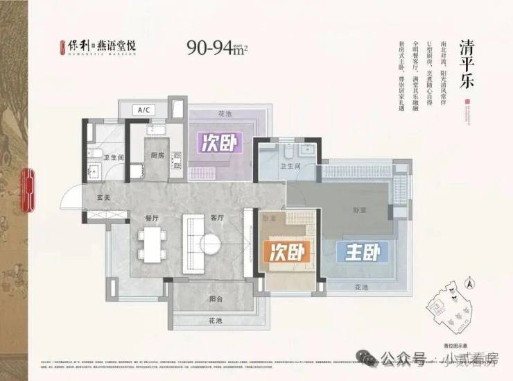 户型有90-94平横厅三房两卫,92平三房两卫,107-112平四房两卫,125平四房两卫