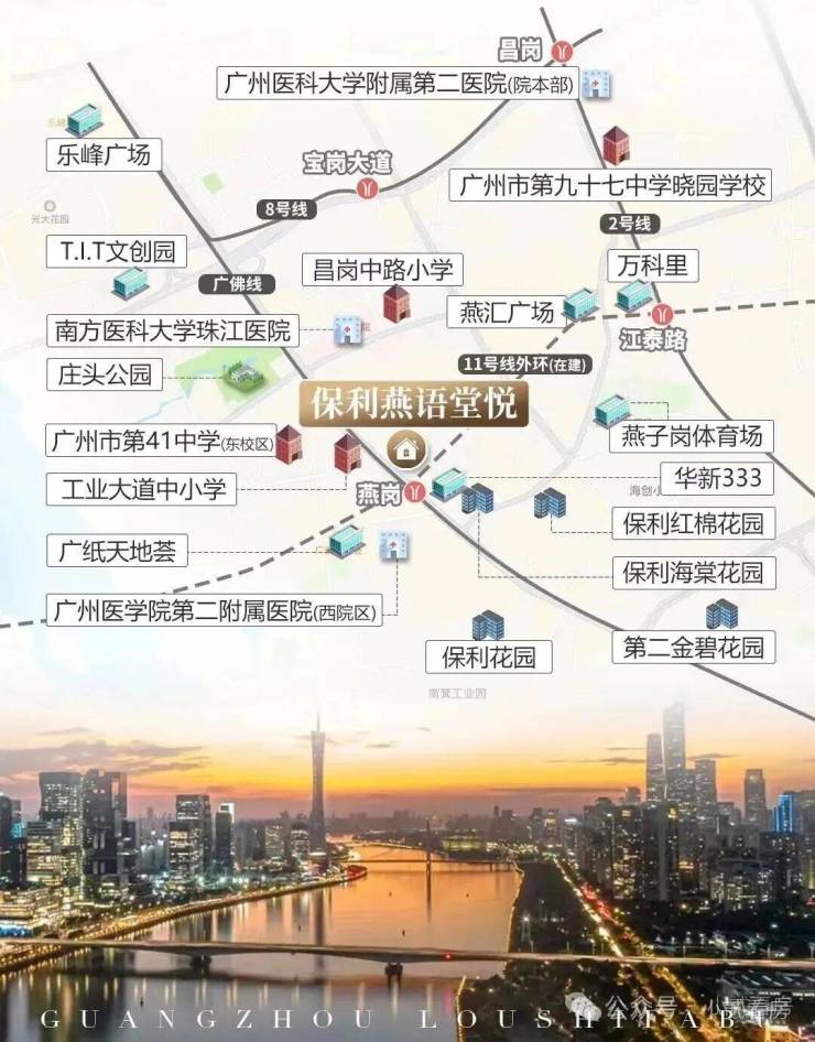 项目位于海珠区工业大道中的燕岗地铁站旁,地铁上盖项目(11号线+广佛线),坐落于工业大道中,背靠珠江后航道,傲立于海珠新活力文商旅融合圈与广州市"首个"后航道服务型制造创新带交汇的核心地带,海珠后航道将成为海珠未来唯一连片开发的豪宅板块。
