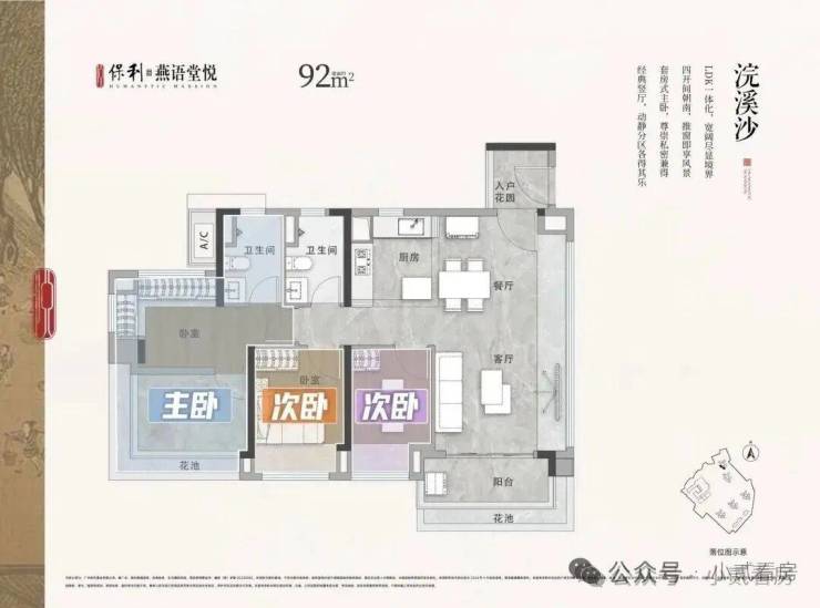 除了92平竖厅是报建2个阳台外,其它户型都报建有3个阳台,定位偏刚