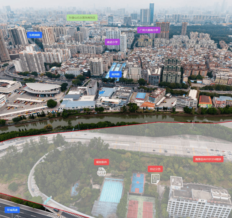 公交:周边直线 1km 内有 20 个公交站,距离最近的海珠客运站站仅有 355m,公共交通出行较为便捷。