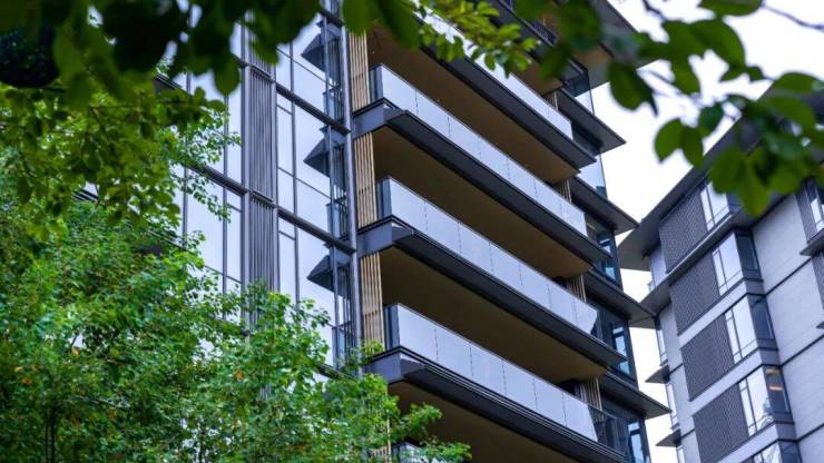 据此前效果图的展示,所有建筑外立面采用超大玻璃幕墙+挑檐铝板设计。