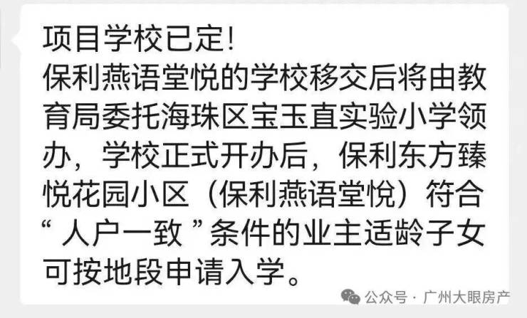 就在前不久,海珠公布最新招生政策,明确符合“人户一致”条件的保利燕语堂悦业主适龄子女可按地段申请该校。