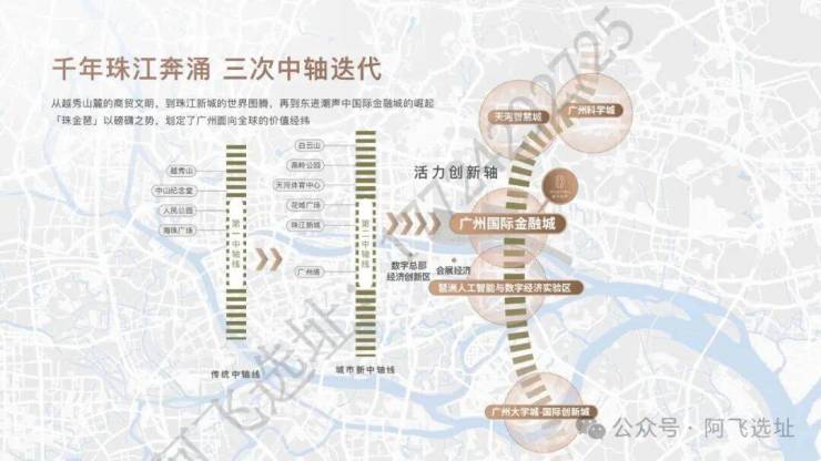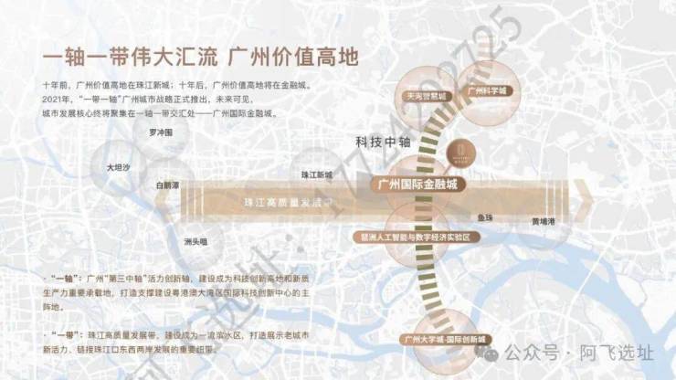 广州新中心: 强调广州城市发展已从传统中轴线、珠江新城,东进至广州国际金融城。这里是“一带一轴”(活力创新轴与珠江高质量发展带)战略的交汇点,是未来十年的城市价值高地。
