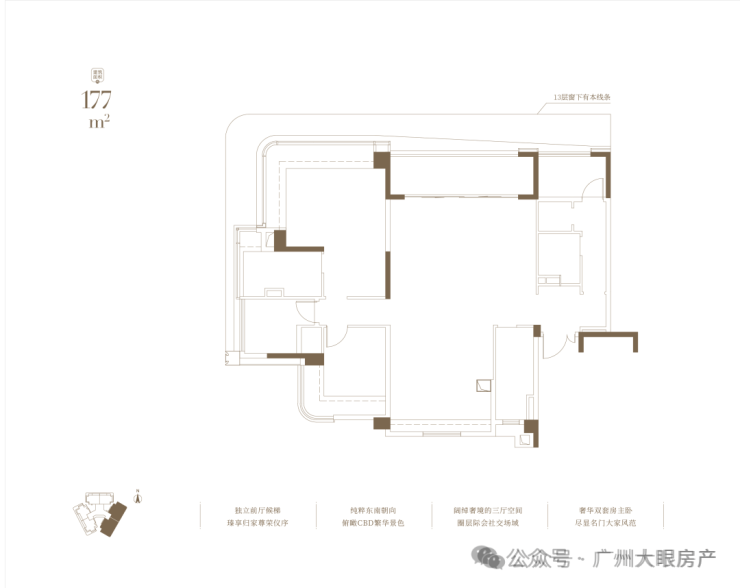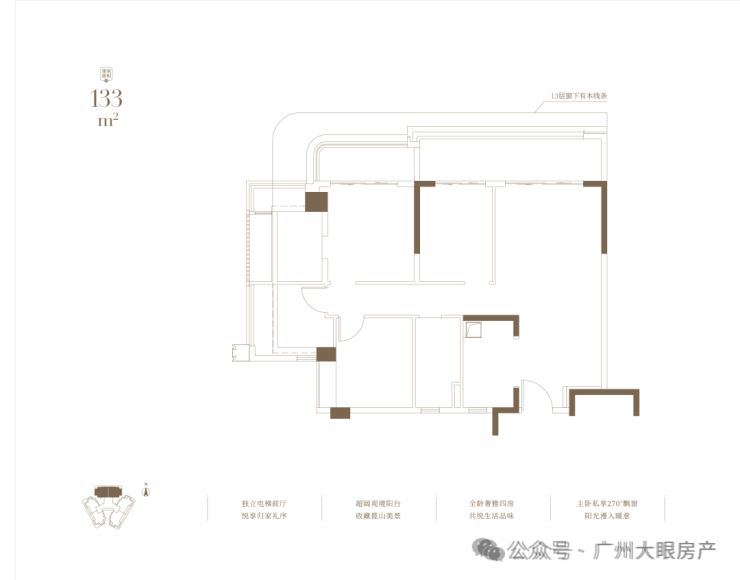 其中,约133㎡北侧看白云山,约143㎡西南向,约177㎡东南向。