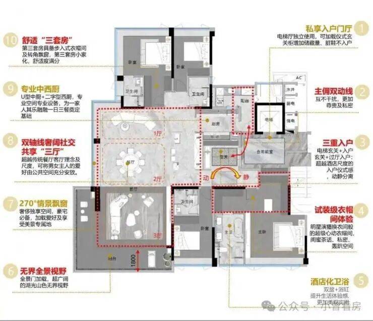 圈层纯粹:大平层产品,总价千万级,吸引高净值人群(实测业主背景调研)。