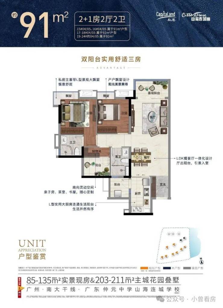 建面约92-131㎡三至四房,刚需改善置业优选。低密小高层,南向3开间,山海双景视野,全户型带主套,270度全景飘窗,美景尽收眼底。