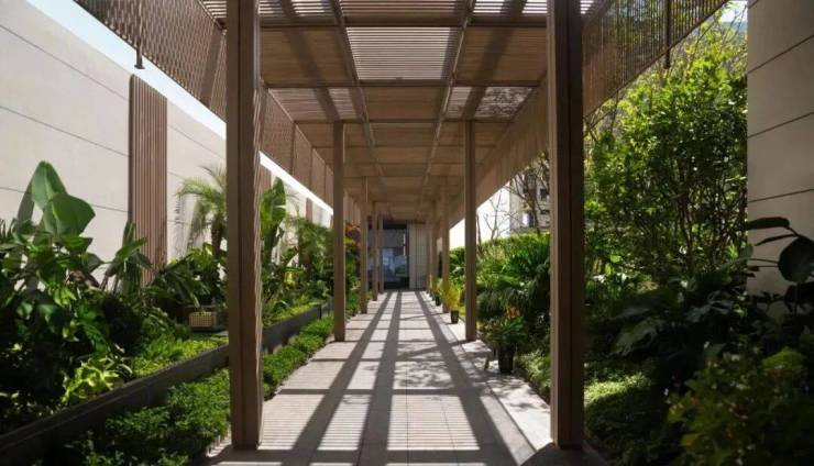 在整个片区的空中花园中漫步,可以通过绿化廊桥,在绿意环抱中,穿过园林归家。
