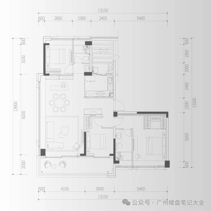 B/B2户型:建面约137㎡三房两厅两卫➢全明大三房 南北对流➢约6.8m超宽景观阳台➢主卧套房 阳光化妆间➢独立长辈房 动静分区