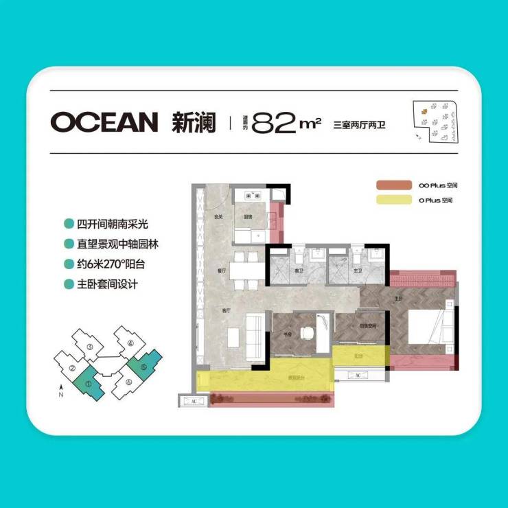【约82㎡ 3房2厅2卫】南向看山