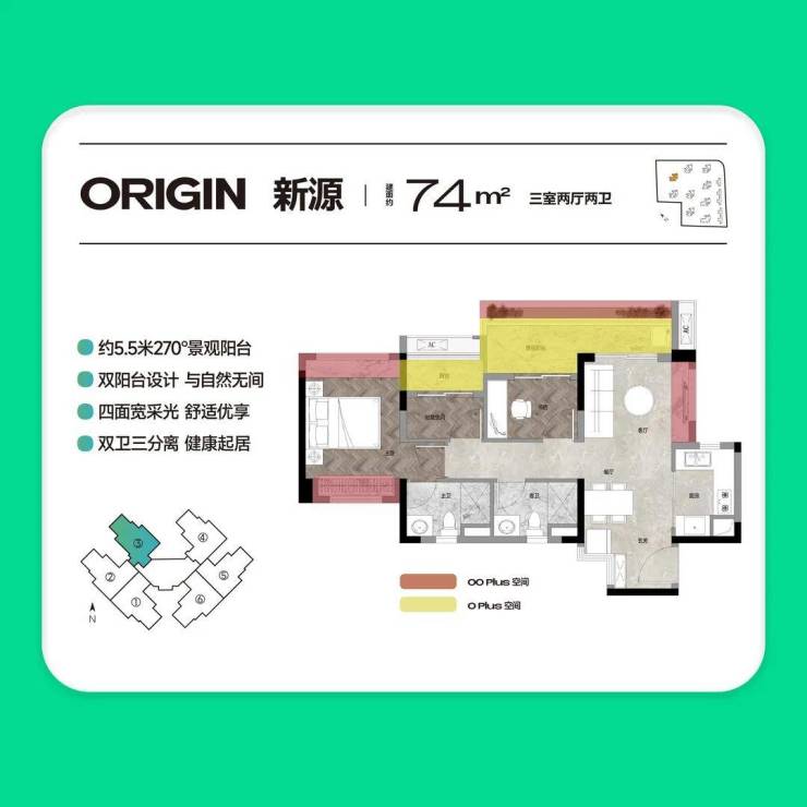 【约74㎡3房2厅真2卫】卷出天际