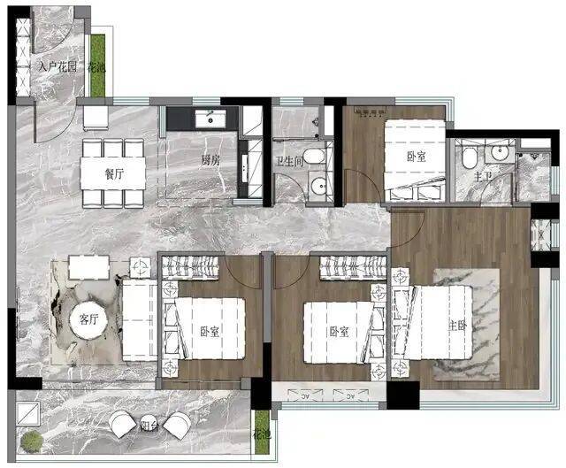 105平,算是长隆万博悦府125平,以及万博城188平的缩小版。