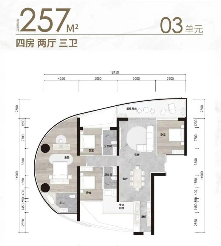 标准层面积:约620㎡ ,户型包括176㎡-187㎡-204㎡-257㎡三至四房