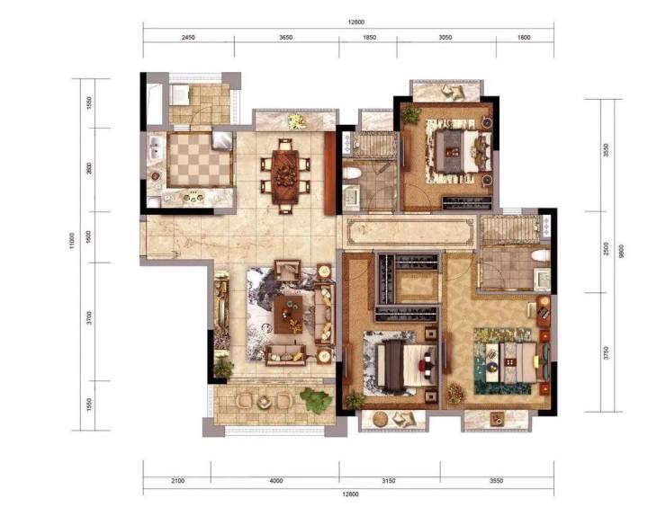 120㎡-三室两厅|配置三个大面积卧室,生活舒适