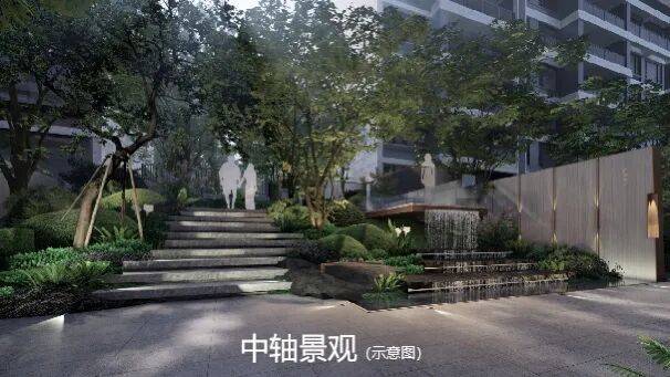 ▪【景观中轴】规划“入山 - 穿林 - 登高 - 望远”的园林景观中轴,形成一轴三横邻里花园,营造登山入林式归家感受。