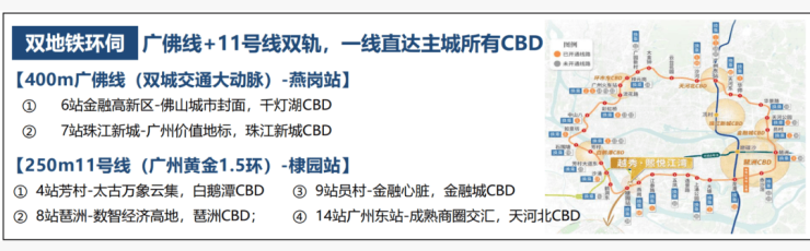 🚇交通便捷:双地铁上盖,11号线棣园站、11号线&广佛线燕岗站在旁