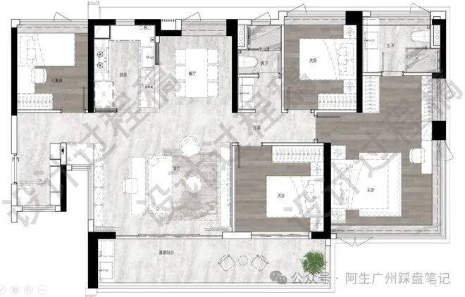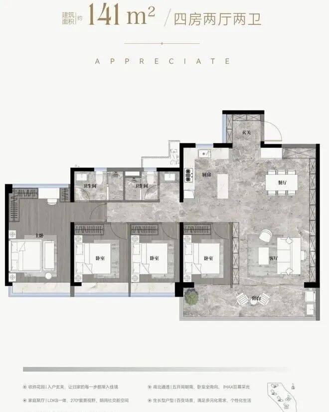 ✅5.9m开间巨幕客厅,主卧270°全景飘窗