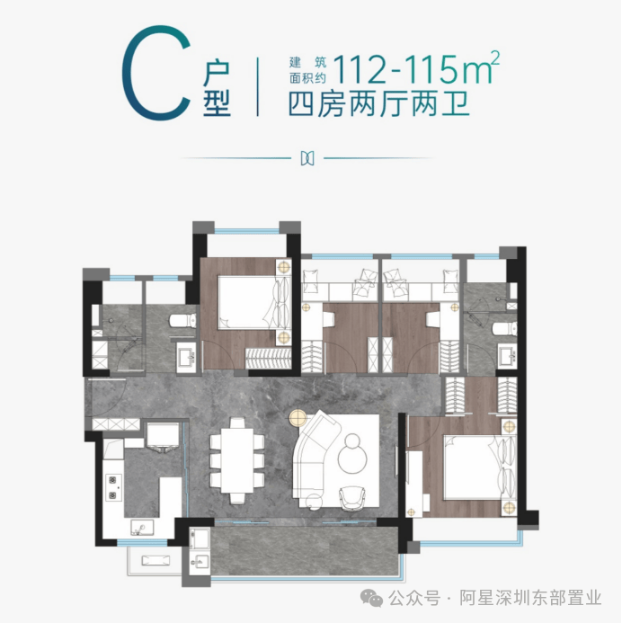建面约112㎡四房两厅两卫