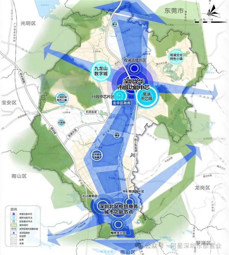 2024年国务院批复将龙华划入都市核心区范围,打造龙华南北双中心。项目所在的北中心以九龙山数字城+鹭湖中心城+大浪时尚小镇为核心,将作为行政中心和数字经济核心区,与北站红山形成双中心,共同驱动龙华的发展。