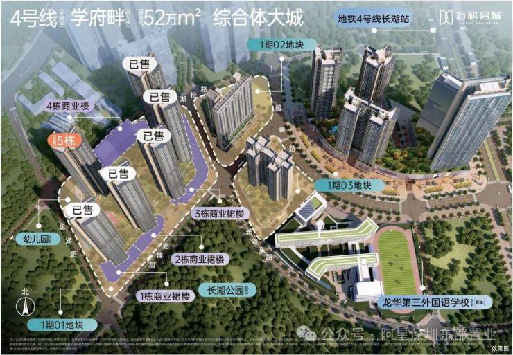 4号线长湖站地铁口物业,9站直达深圳北,实际距离福田CBD约20公里;自深圳北站至香港西九龙站高铁车程时长约30分钟;