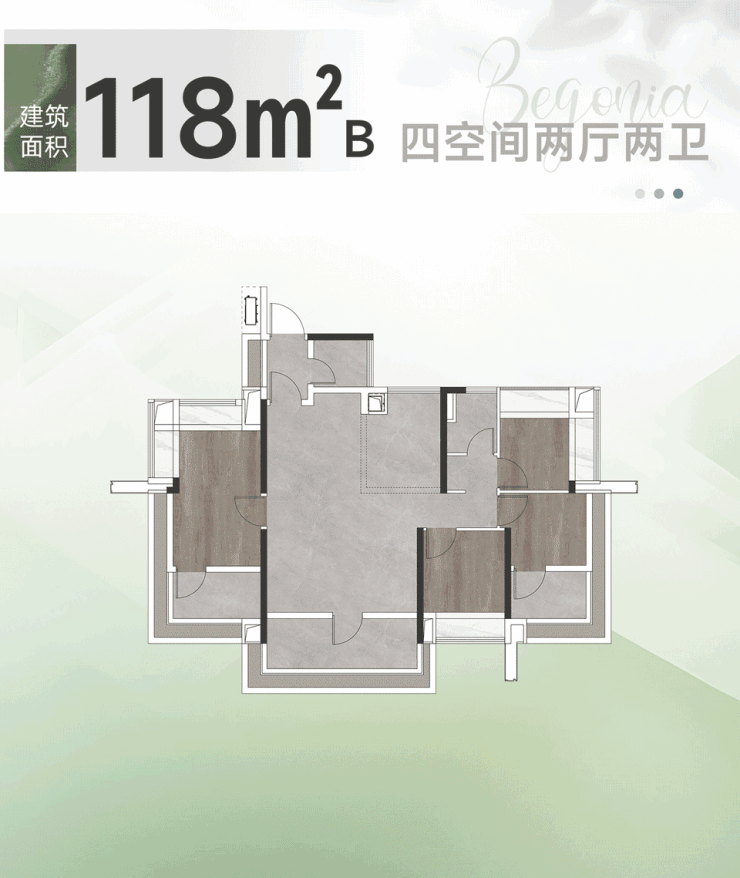 建面约118㎡B户型也是王牌,进门就有专属玄关柜和独立家政区。约15米南向面宽+南北通透,风穿屋过,光线满满;主卧配270°环幕飘窗,连次卧也能尽览番禺中央公园景观。