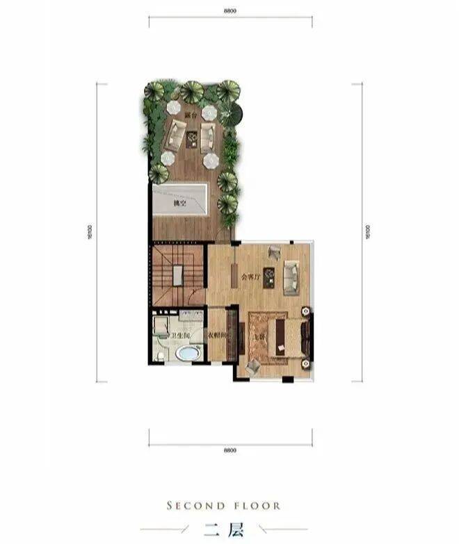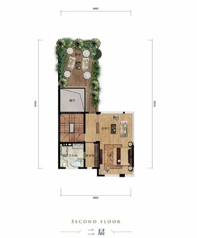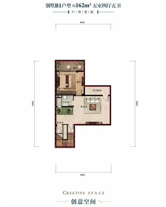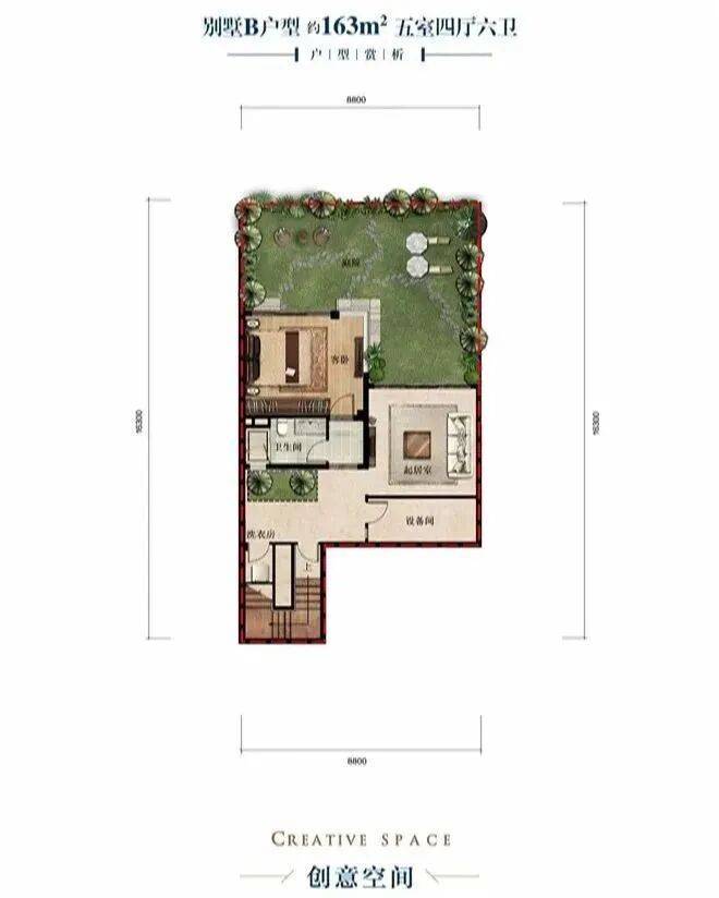 全套房设计(B1户型与B户型基本相同,B1户型为地上花园,B户型为地下花园)。