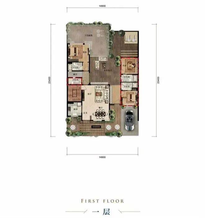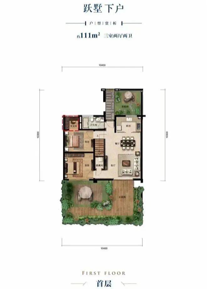 首层前庭后院、餐客厅等宽一体设计、双卧室