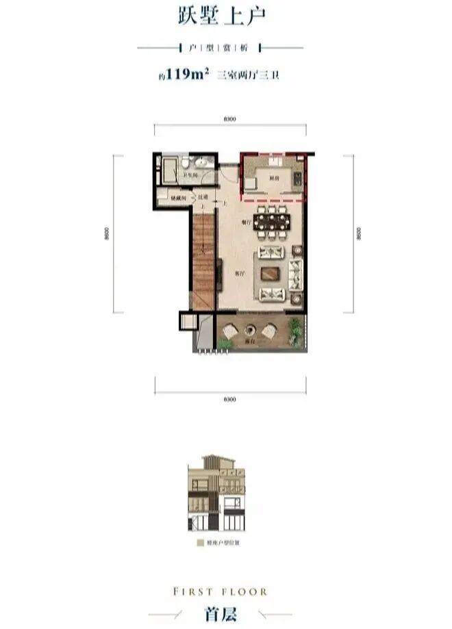 首层独立入户、餐客厅等宽一体设计、方正露台