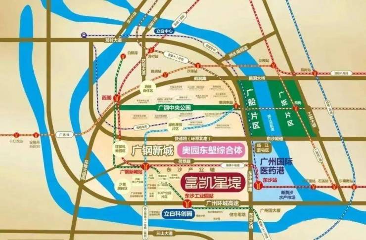 富凯星堤项目位于白鹅潭商圈、广钢新城、广州国际医药港、佛山、高铁南站的中核位置,是该片区在售商业项目,邻广州圆大厦,与敏捷锦绣半岛遥相对望。