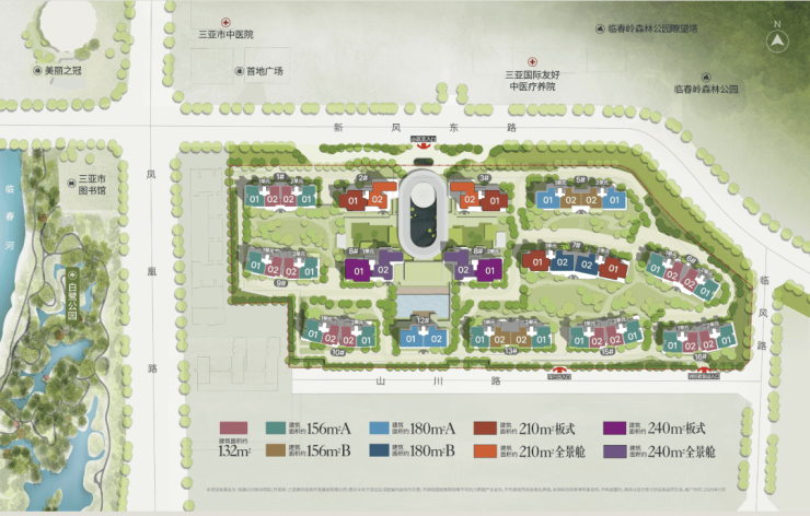 ◎产品面积:建面约132m²、156m²、180m²、210m²、240m²,共603席