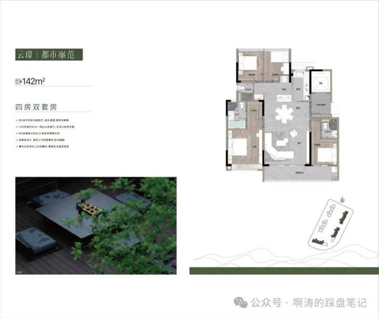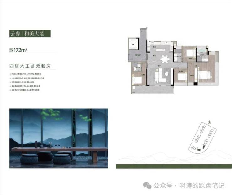 专梯专户山居环幕MAX平层,视野开阔,揽一线云山美景,低17展低密居件环境非常舒适,仅319户。