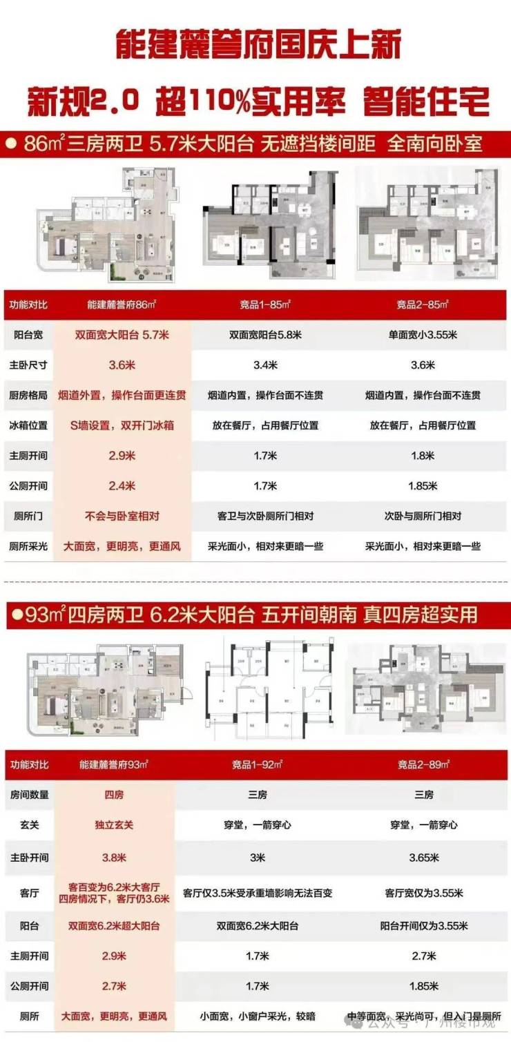 国庆期间项目加推的14栋建面约86㎡三房、93㎡四房全新新规2.0智慧住宅,空间、功能、装标三大维度都做了PLUS升级——