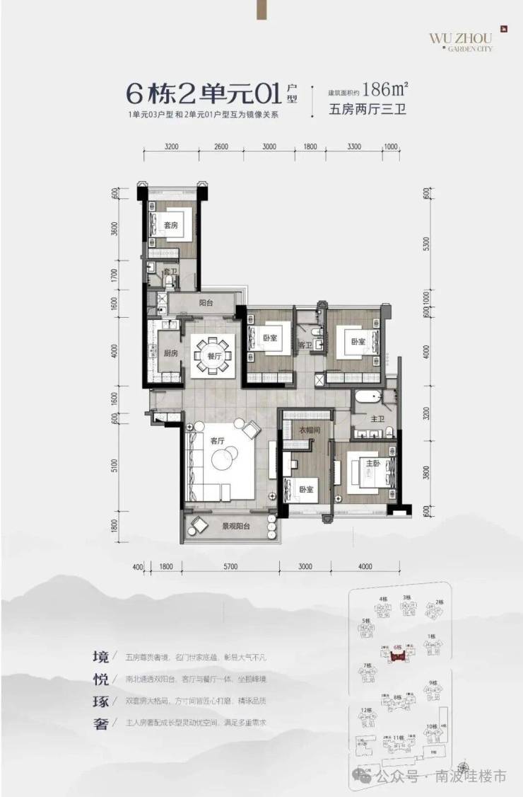 186m²:五房俩厅三卫