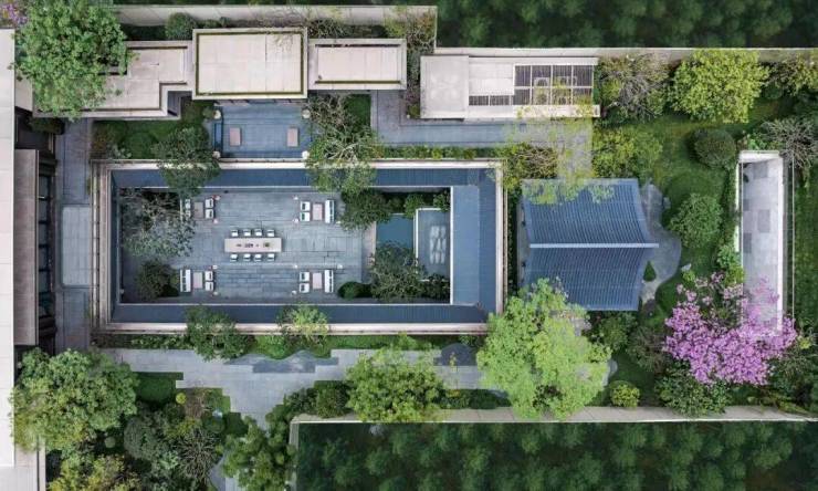 名贵花木、景观楼阁,构成「四水归堂」形制。
