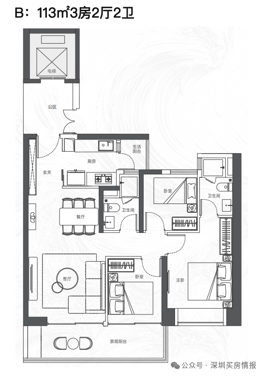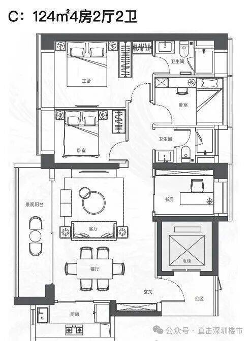 该项目将推出大约380套住宅,建筑规划包括2栋塔楼,其中高区采用4梯4户的设计,低区则为5梯5户,确保了每户都能享有独立电梯厅的配置。