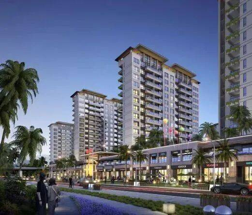 近揽东岸总部中央商务区、乐天城综合体、鸿港新贸城、海旅免税城等商圈,项目西侧在建亚沙会体育中心,总部办公、商业、酒店、影院、体育赛事等高规格醇熟配套一应俱全;
