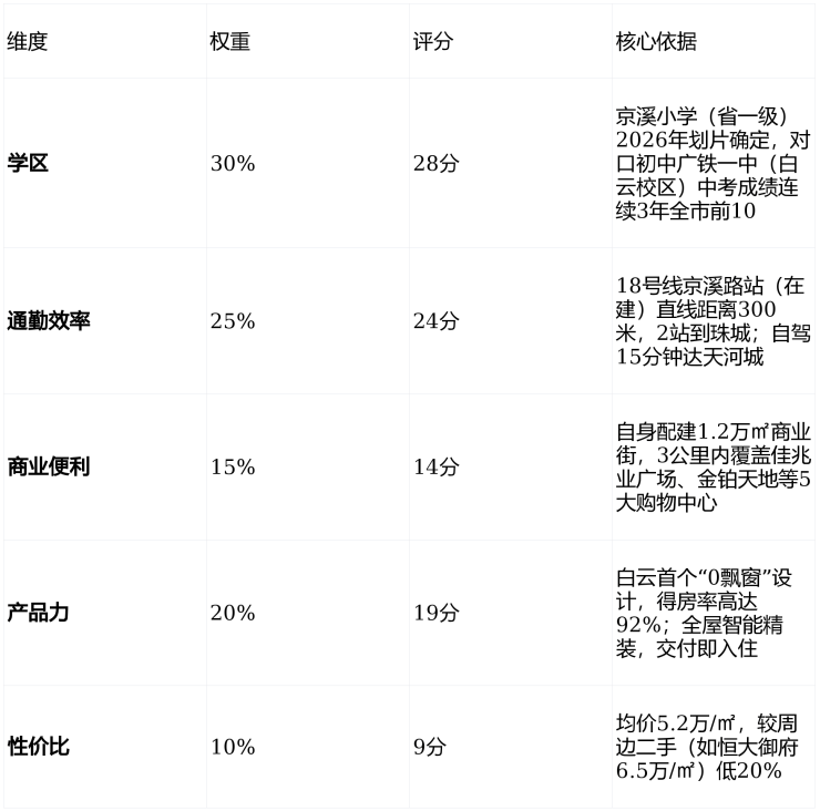 二、白云·越秀云萃:全能型住宅价值评分表(总分100分)