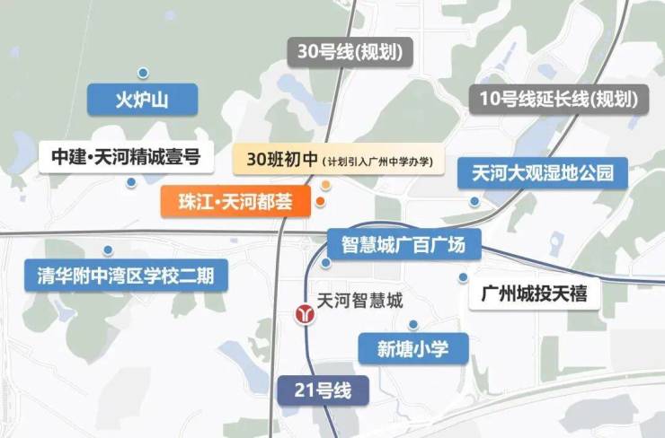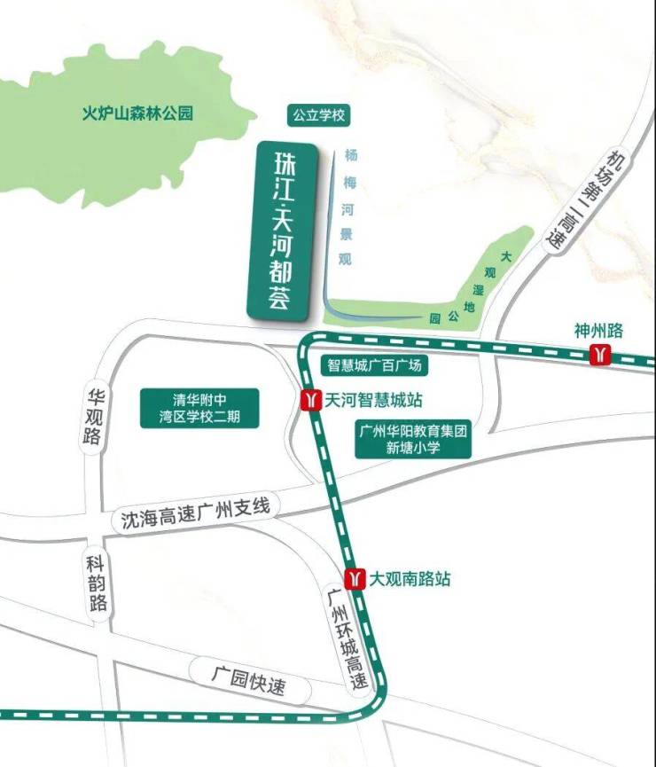 仅次于教育的,便是便捷的交通了。项目坐落于天河智慧城,紧邻地铁21号线天河智慧城站,步行仅600米,8-10分钟可达,属于真正的地铁口楼盘。乘坐21号线快线,3站直达金融城,5站抵达珠江新城,半小时通勤圈轻松覆盖主城商圈,对于珠金琶上班族来说,每天能多睡半小时,幸福感直接拉满。