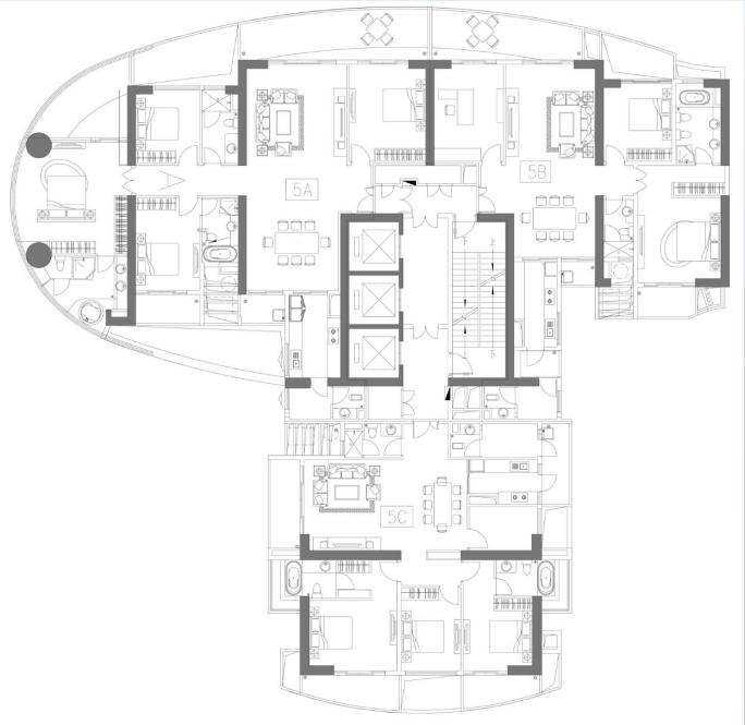 Ø产品规模:共7栋,由江景大宅、酒店公寓、写字楼组成;住宅户车比:1:2.6