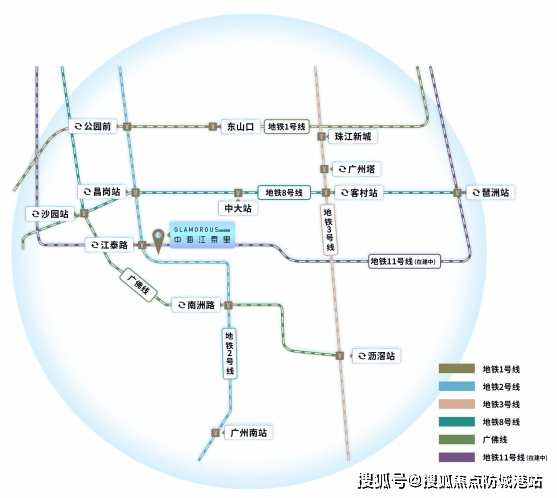 江泰里项目周边交通便捷,步行200米即达江泰路地铁站,2号线通达海珠广场、公园前、火车站等核心地段,11号线贯穿琶洲、金融城、天河北等区域,实现快速城市通达。自驾可依托江南大道、工业大道、广州大道及内环路直达各大商圈及高速入口,通行效率高。